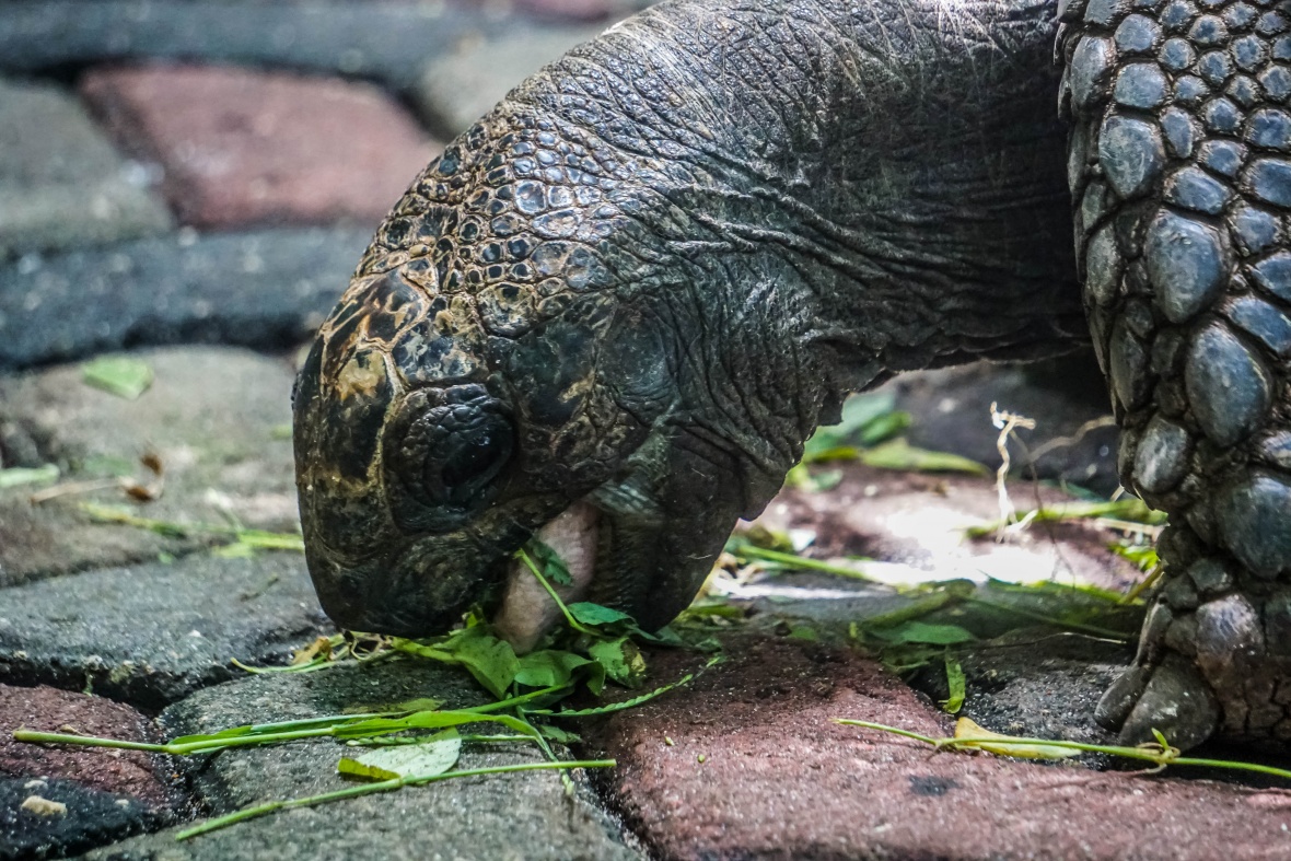 These creatures were ancient! They looked like they dated back to the dinosaur era! Their movements were slow and steady; every step seemed to require an immense amount of energy. Their shells were several inches thick and literally rock solid weighing in at over 500 pounds. The oldest one there was sadly marked with paint indicating its old age. It was over 198 years old! Their skin looked and felt like what I would imagine a Triceratops dinosaur would have, being dark, wrinkly, and rough. They loved having their necks rubbed and scratched. Some of them were very shy when we first approached them, but as we fed them and rubbed their necks, they relaxed and warmed up to us. We were entranced by these beautiful fascinating animals. I could see in Rob’s face he was overcome with emotion as we watched them and played with them. We could have spent all day with the tortoises! We fell in love with them the moment we laid eyes on them. In all of our travels, the tortoises are by far one of the most magnificent and beautiful creatures either of us have ever seen.