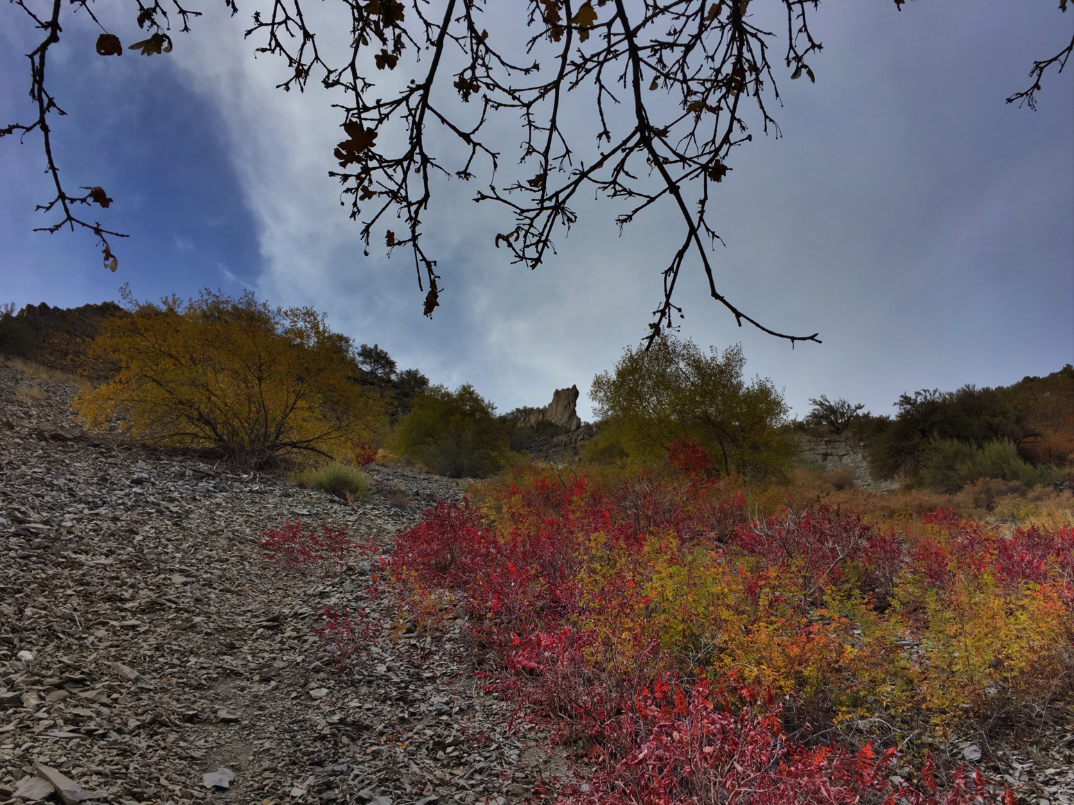 We couldn’t have asked for more perfect weather. The sun was shining between the canyon walls and brightly colored leaves littered the ground; I love the fall! The first half mile up to the falls the trail was wide and you could tell it was well-traveled.         We continued hiking beyond the falls up to Curley Spring; which In my opinion is an adorable name for anything. 🙂  There were some steep hills and the trail thinned out as we continued climbing up the canyon. We met a nice couple who offered to take our picture near the spring; first non-selfie photo we’ve been able to get together hiking in months! Normally there aren’t many people around to take our picture when we’re hiking.   The view from the spring was calm and beautiful. Not too challenging and a short hike but a nice hike for enjoying the scenery and getting a little swear on. I’m so glad we got outside and took advantage of the fall weather while it’s still here. We are so blessed to live in such a gorgeous state and to be surrounded by the mountains. I’ve said it before, but of all of the places I could be, being in the mountains is by far my favorite place in all the world.